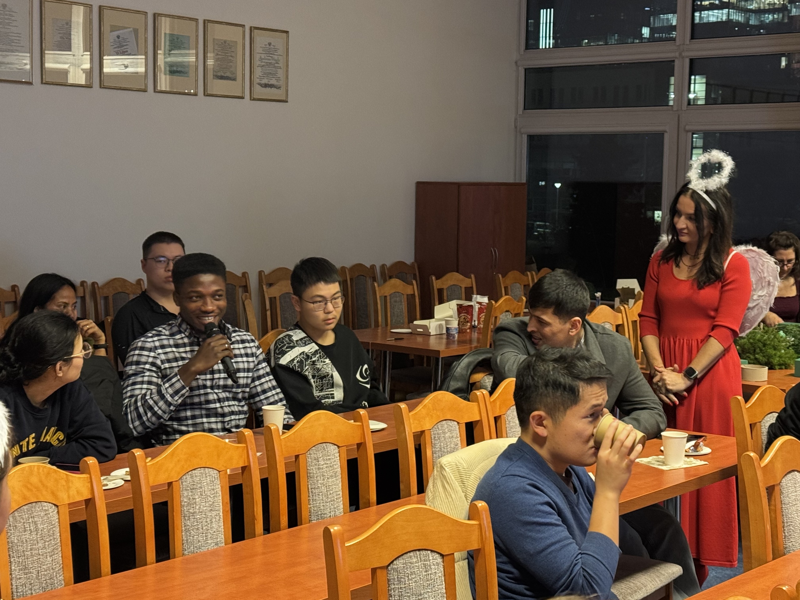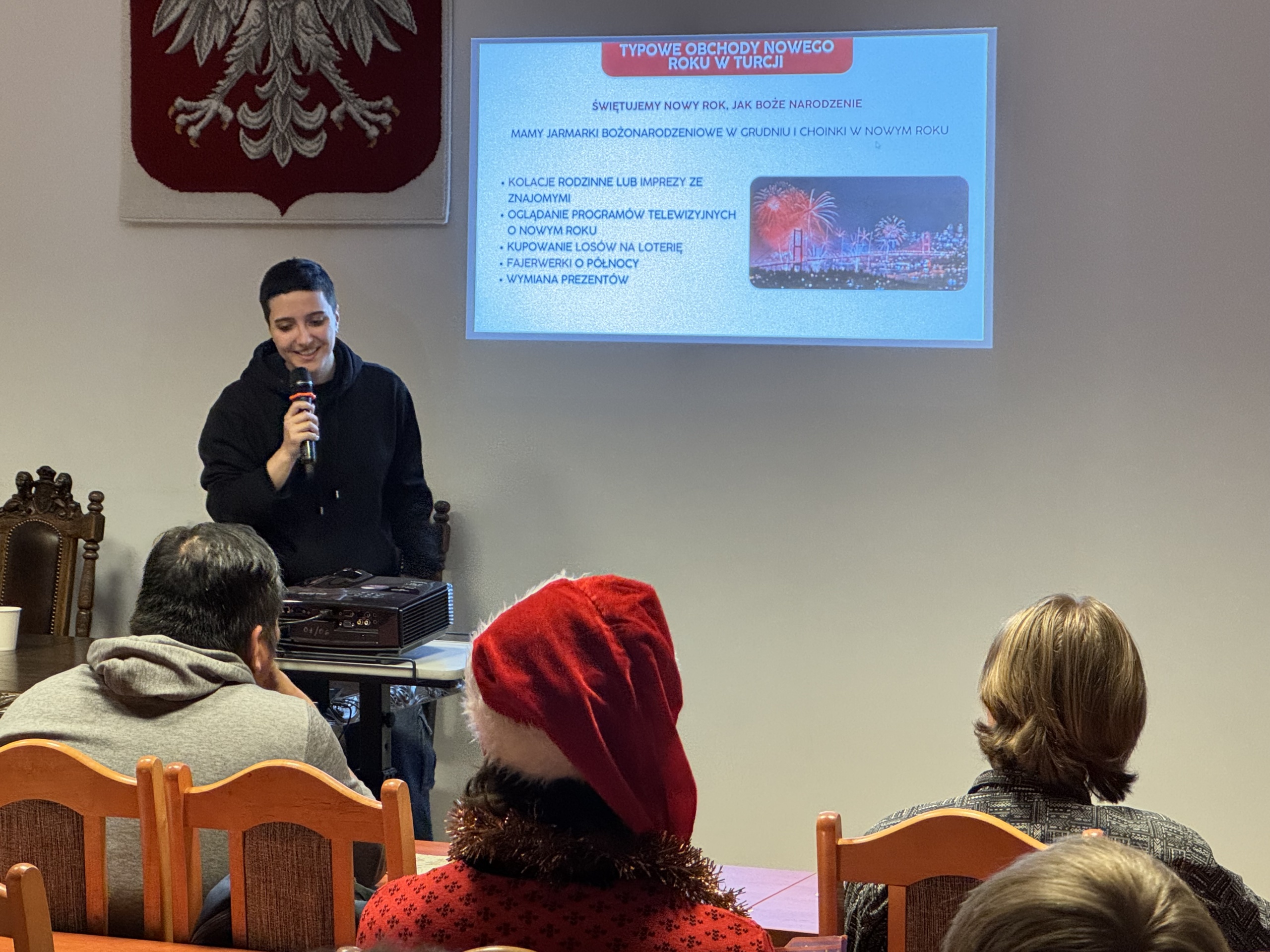 Podczas spotkania pojawiły się krótkie opowieści o polskich tradycjach bożonarodzeniowych – o Wigilii, opłatku, kolędach i potrawach świątecznych. Kursanci chętnie dzielili się też informacjami o zwyczajach panujących w ich krajach, porównując sposoby świętowania i zwracając uwagę na podobieństwa oraz różnice.